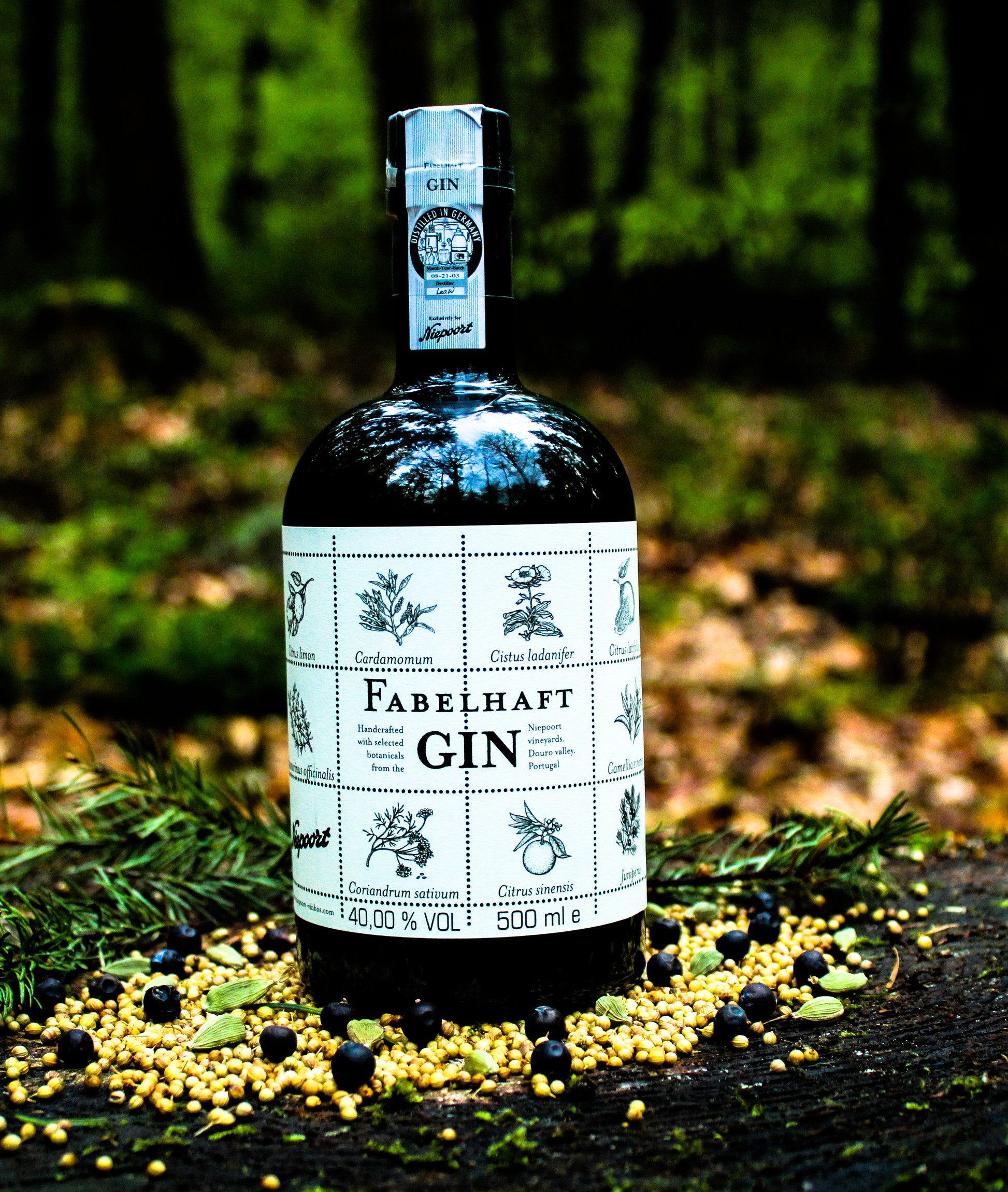 Die „Fabelhaft“-Weine aus dem Hause Niepoort gehören zu den bekanntesten und erfolgreichsten Portugals. Zur besonderen Beliebtheit trägt der unverwechselbare künstlerische Stil der Flaschenetiketten ganz wesentlich bei. Die Idee, einen Gin als logische Ergänzung zum Weinsortiment zu kreieren, entstand in Zusammenarbeit zwischen dem Weingut-Inhaber Dirk Niepoort und dem Hamburger Produktentwickler und Weinhändler Dirk Delventhal. Um eine Verbindung zur Herkunft der Weine zu schaffen, vereint der „Fabelhaft Gin“ 9 Botanicals aus dem mediterranen Raum. Das für das besondere Aroma wichtigste Botanical, die Lackzistrose, wird sogar direkt in den Niepoort-Weinbergen im Douro-Tal von Hand gepflückt und sofort in die norddeutsche Destillerie geschickt. Alle Botanicals werden einzeln mazeriert , destilliert und später dann nach Rezept vermischt.